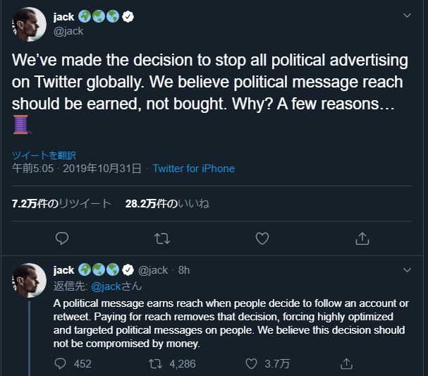 Twitter、政治的なツイートの広告を排除へ