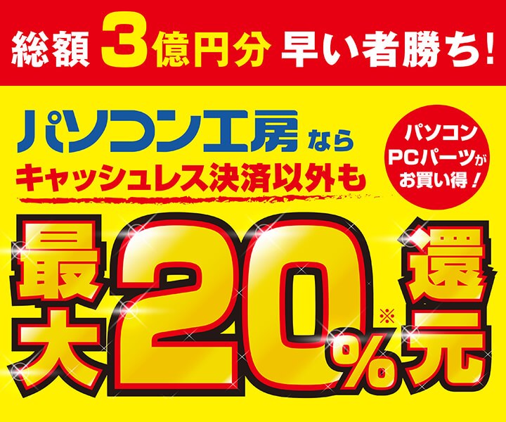 • パソコン工房、購入金額の最大20%をキャッシュバックする総額3億円キャンペーン
