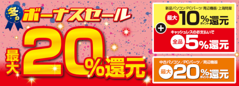 ドスパラ、購入金額の最大20%がポイント還元されるキャンペーン
