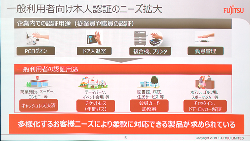 富士通、手のひら静脈など法人向け生体認証ソリューション提供開始