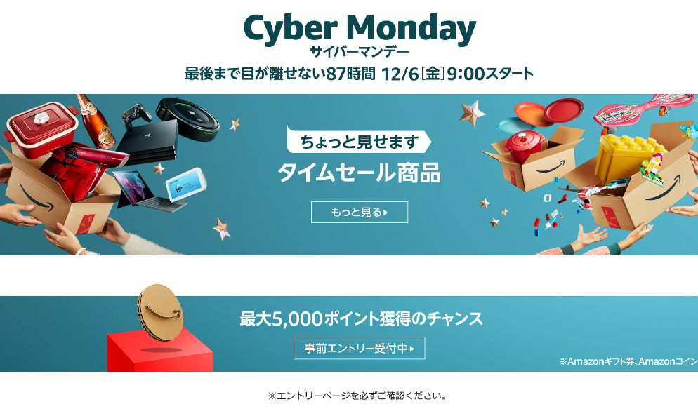 Amazon、12月6日より大型セール「Amazonサイバーマンデー」開催