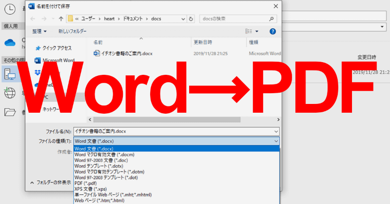 WordやExcel、PowerPointでPDFファイルを保存する。一部を選択しての保存も可能