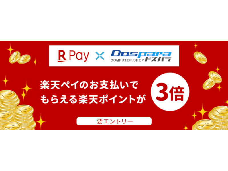 ドスパラ、通販で楽天ペイを利用するとポイントを3倍付与するキャンペーン