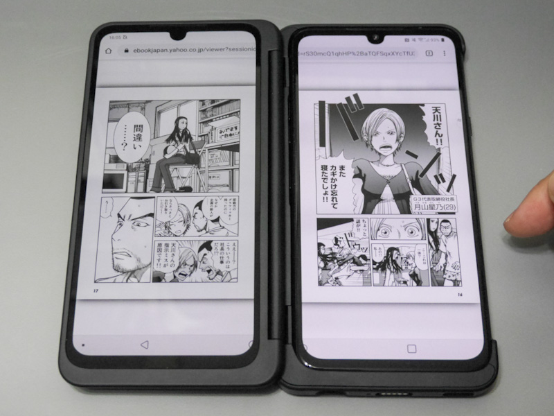 左右の画面でコミック見開き表示は可能? 2画面スマホ「LG G8X ThinQ」で電子書籍を試す