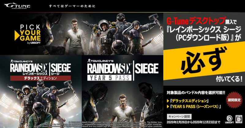 マウス、G-Tuneのゲーミングデスクトップ購入で「R6S」がもらえるキャンペーン