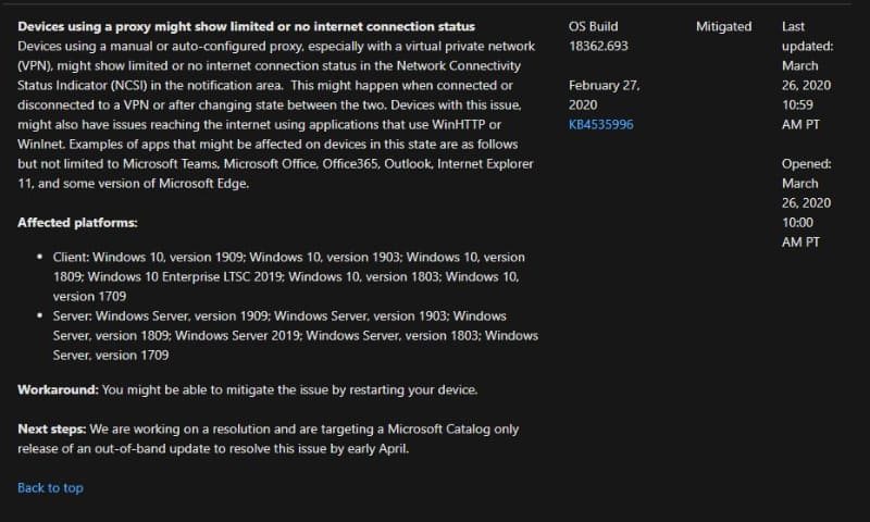 Windows 10ネットワーク接続不具合の修正が前倒しで公開
