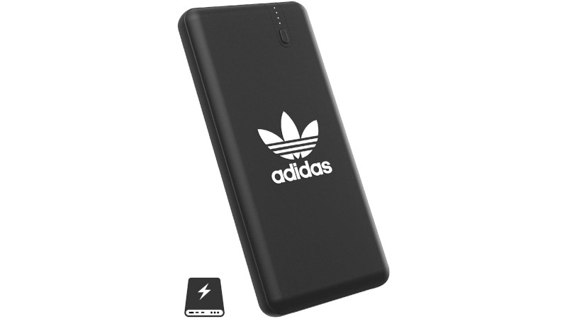 アディダスのトレフォイルロゴをあしらったUSB Type-C対応モバイルバッテリ