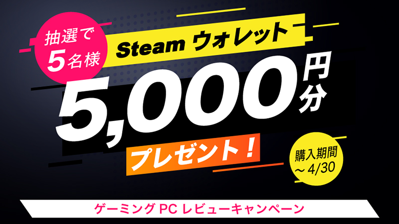 ドスパラ、GALLERIAのゲーミングPC購入&レビューで5千円分のSteamウォレットが当たるキャンペーン