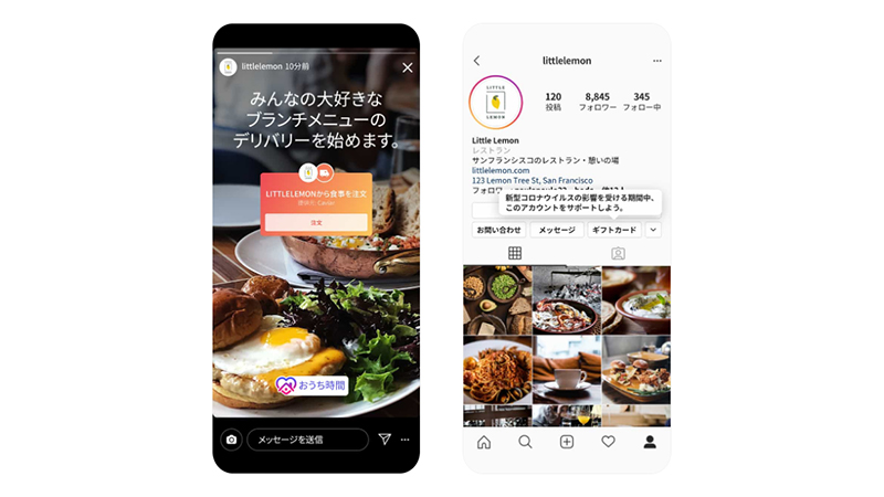 Instagram Storiesからテイクアウトやデリバリーが注文可能に