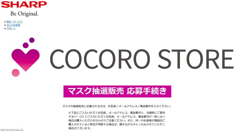 シャープのマスク、抽選販売を開始。重複応募は無効