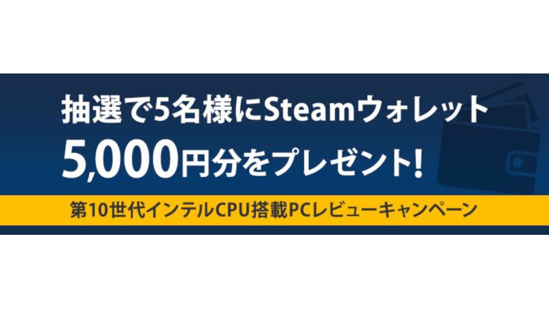 ドスパラ、第10世代Core搭載PCのレビュー投稿でSteamウォレットが当たる抽選キャンペーン