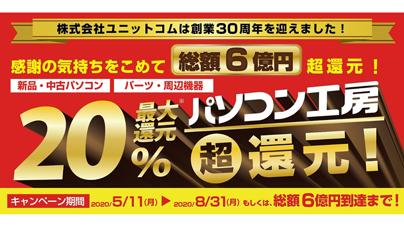 パソコン工房、最大20%還元キャンペーンを期間限定で拡大。税別5万円以上のiiyama PCも対象に
