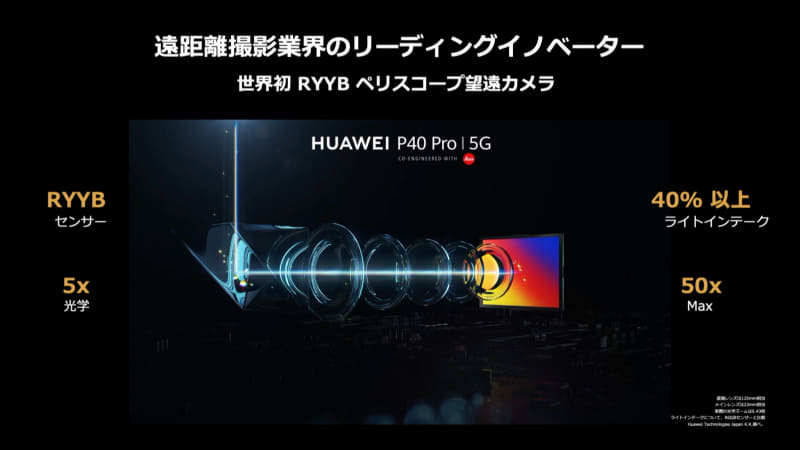 • Huawei、“カメラモンスター”を謳う5眼搭載スマホ「P40 Pro+」