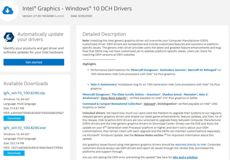 Intel、Iris Plusでのゲームプレイを改善したグラフィックスドライバ