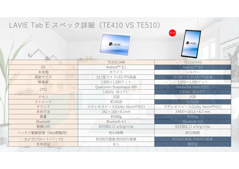 NEC PC、狭額縁デザインで顔認証対応の10.3型Androidタブレット