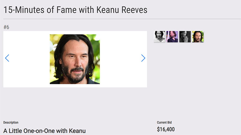 キアヌ・リーブスとZoomで15分会話する権利。オークション販売中