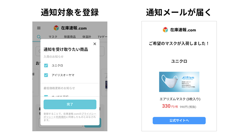 在庫速報.com、「日本製マスク」や「除菌シート」などの在庫/価格情報を検索可能に