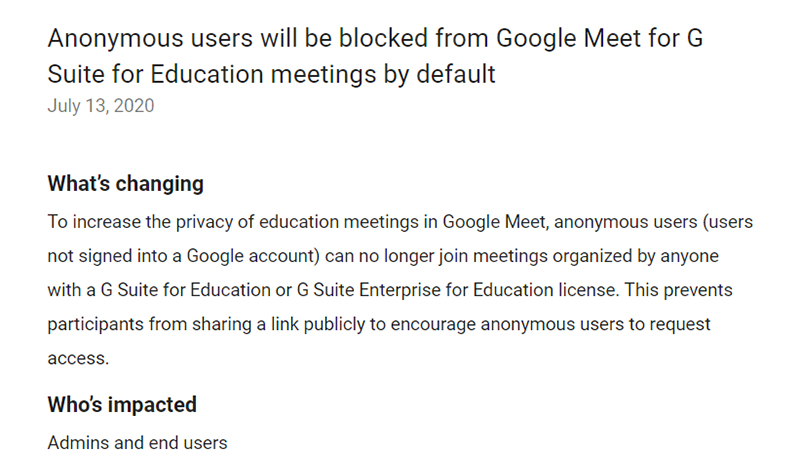 教育機関向けのGoogle Meetに未ログインユーザーをブロックする機能