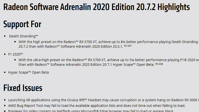 DEATH STRANDINGやHyper Scapeに最適化したRadeonドライバ「20.7.2」が公開
