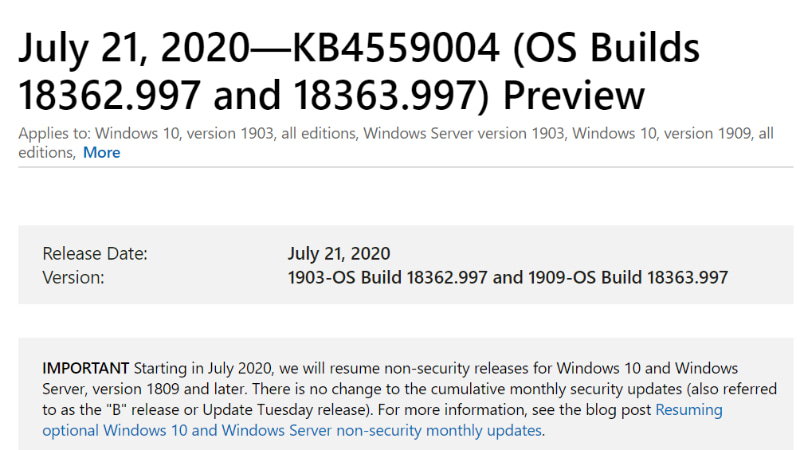 Windows 10に累積更新。ただし、2004では日本語IMEに不具合が発覚済み