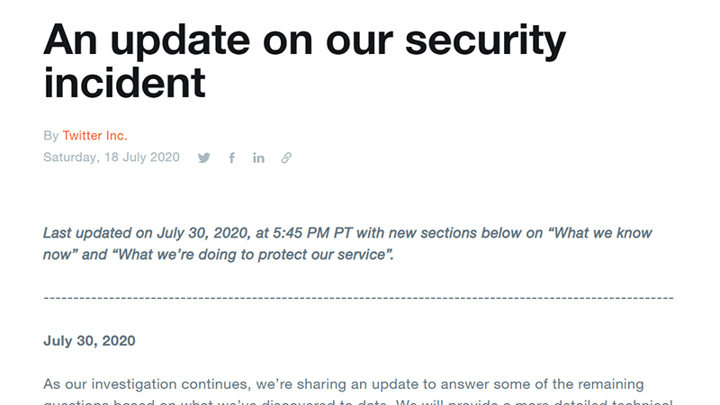 Twitterの大規模ハッキングは、内部ツールでパスワードリセットしアクセスが行なわれていた