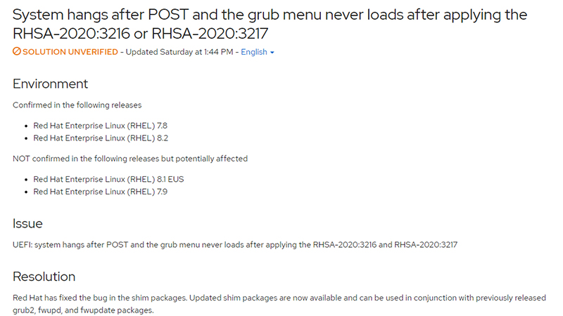 BootHole対策パッチによってRed HatやUbuntuが起動不能に。さらなるパッチが公開