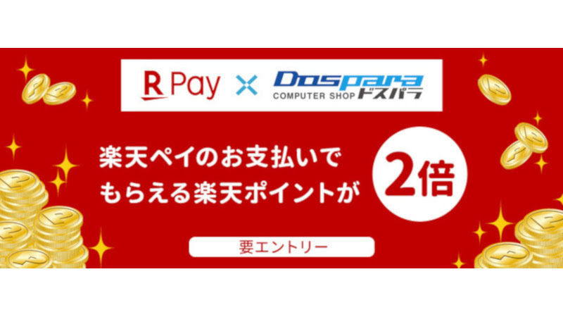 ドスパラ、通販で楽天ペイを利用するとポイントを2倍付与するキャンペーン