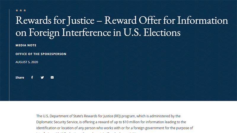 米政府、選挙へのサイバー攻撃犯特定に1千万ドルの報奨金