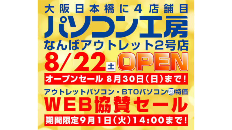 ユニットコム、なんばアウトレット2号店オープン記念でWeb協賛セール
