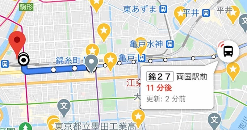 Googleマップで都営バスのリアルタイム位置情報を見る方法 ほか