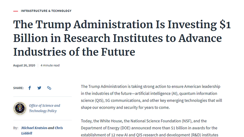 米政府、AIと量子コンピュータの研究開発に10億ドル超の投資