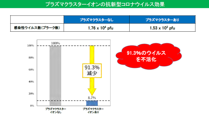 シャープ、プラズマクラスターで新型コロナの約91%不活化に成功(3/11)