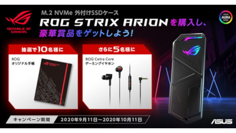 ASUS、M.2 SSD用外付けケース購入でイヤフォンなどが当たるキャンペーン