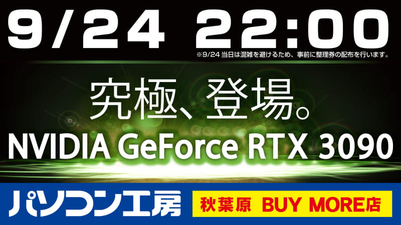 24日22時に「パソコン工房秋葉原BUYMORE店」でGeForce RTX 3090が深夜販売