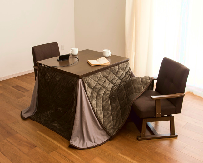イオン、椅子に座ったまま温まる高脚こたつ。USBやコンセントも装備