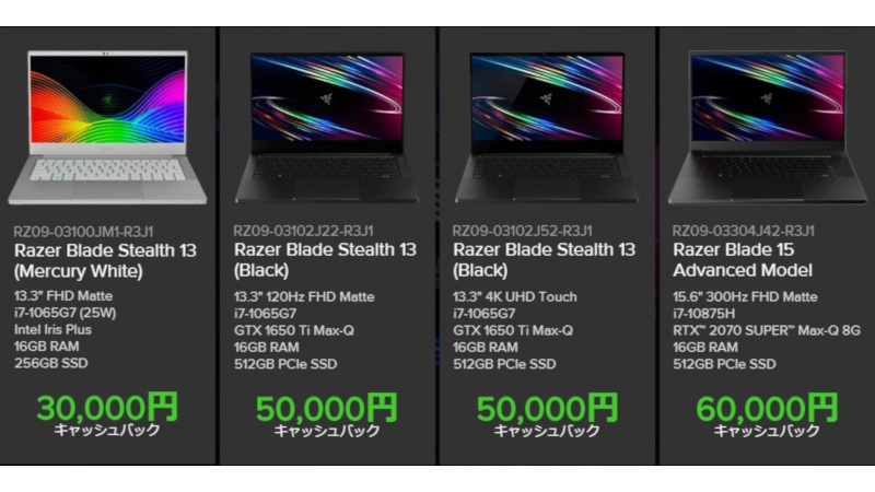 Razer、Razer Bladeシリーズ購入で最大6万円キャッシュバック