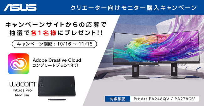 ASUS、Adobe CC 1年分やペンタブレットなどが当たるProArt購入キャンペーン