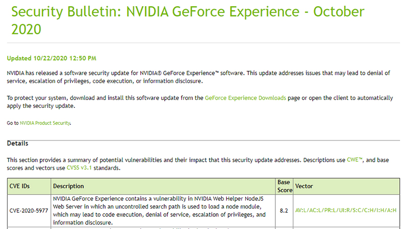 NVIDIA、ShadowPlay関連など3件の脆弱性を修正したGeForce Experience用アップデート