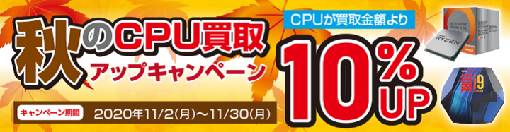 ドスパラ、CPUの買取額が10%アップするキャンペーン