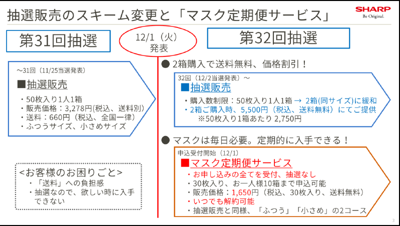 シャープ国産マスク、12月2日に第32回目抽選販売