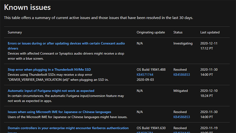 「Windows 10 May 2020 Update」でブルースクリーン発生やBluetooth未接続、一部アプリでIME不具合