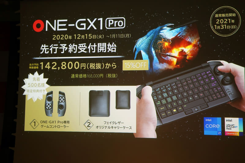 7型ゲーミングUMPC「OneGx1 Pro」の予約が本日開始。初回は税別14万2,800円から(2/26)