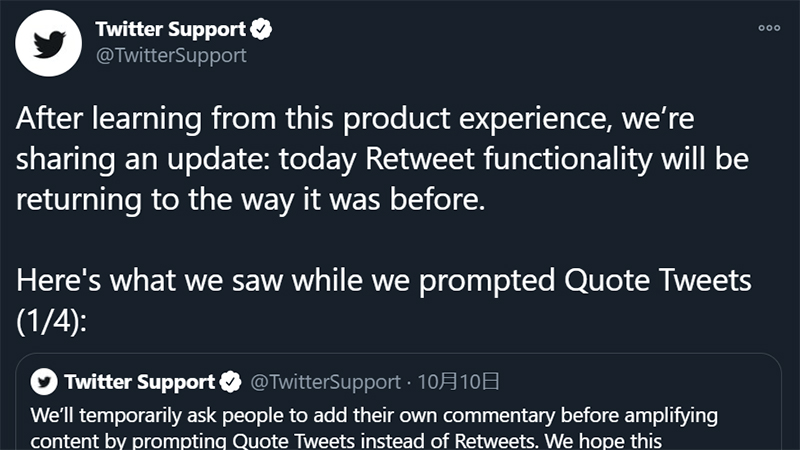 Twitterのリツイートが元どおりに。米大統領選にともなう変更を解除