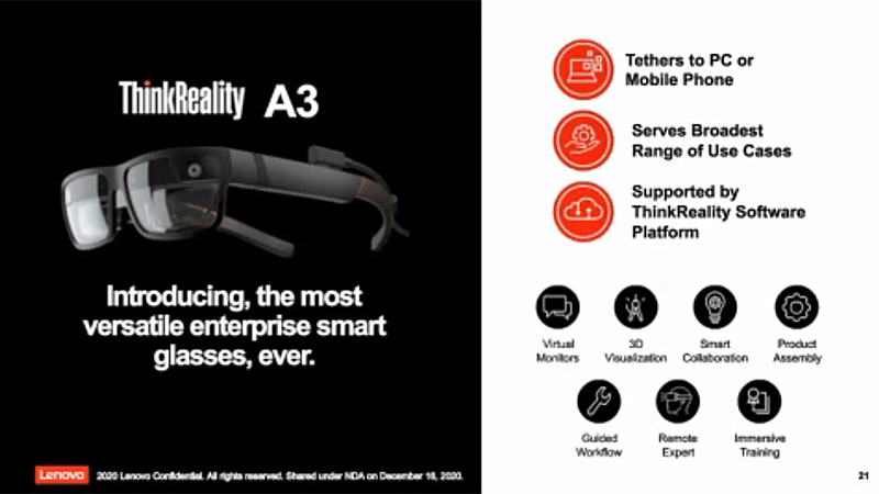 Lenovo、ARスマートグラス「ThinkReality A3」発表