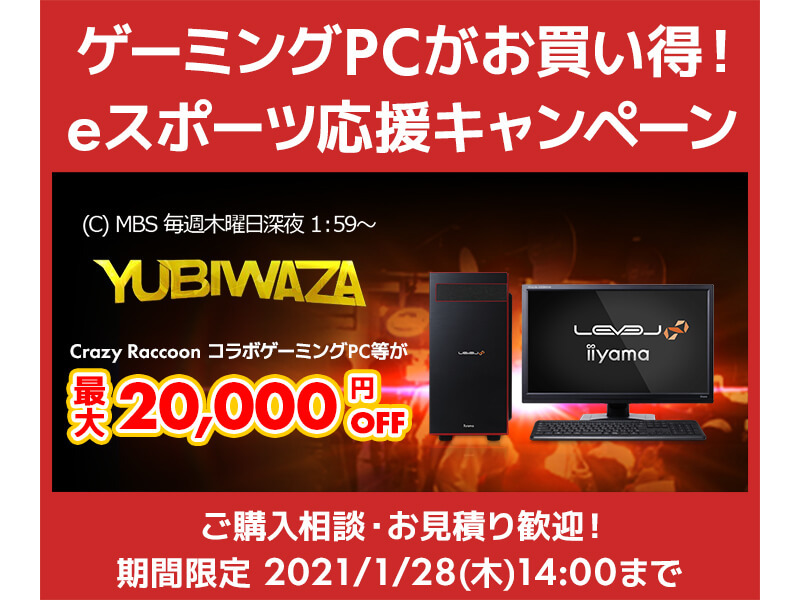 ユニットコム、ゲーミングパソコンを最大2万円引き。MBSの「YUBIWAZA」タイアップ