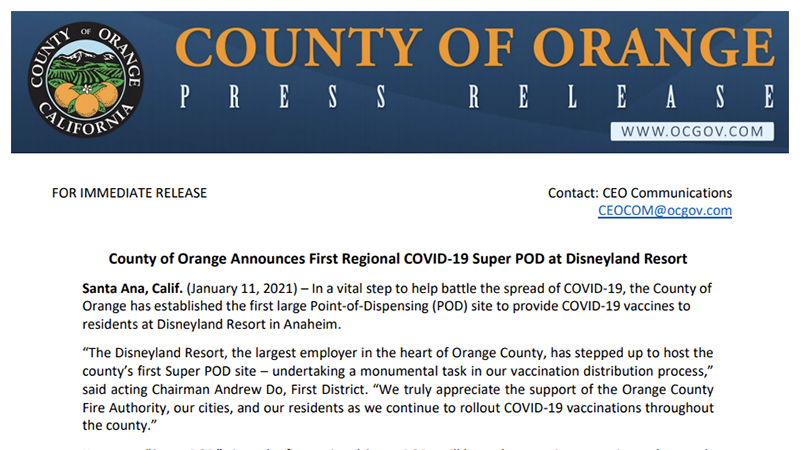 米ディズニーランドに新型コロナワクチンの大型接種拠点