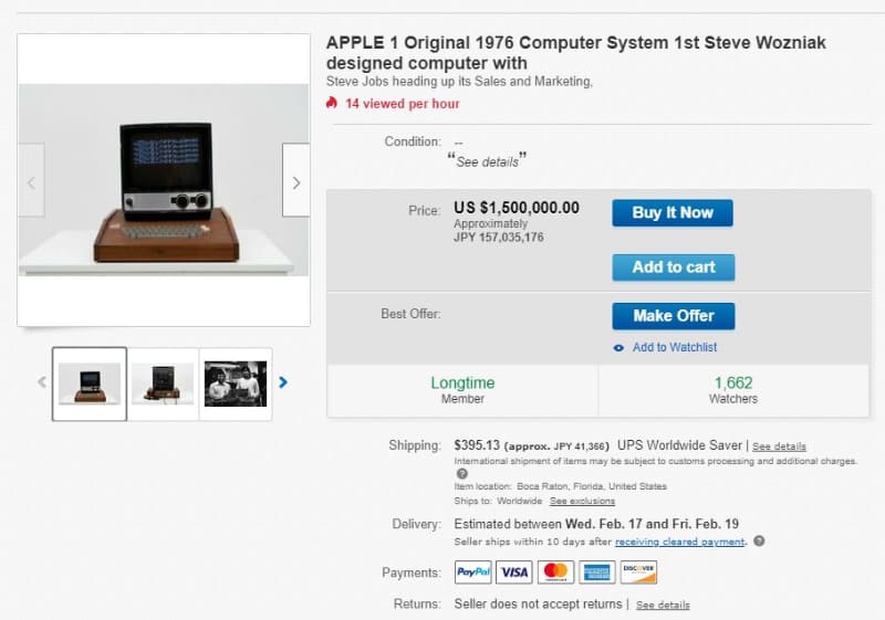 動作する「Apple I」がeBayで出品中。すでに1億5,700万円超え