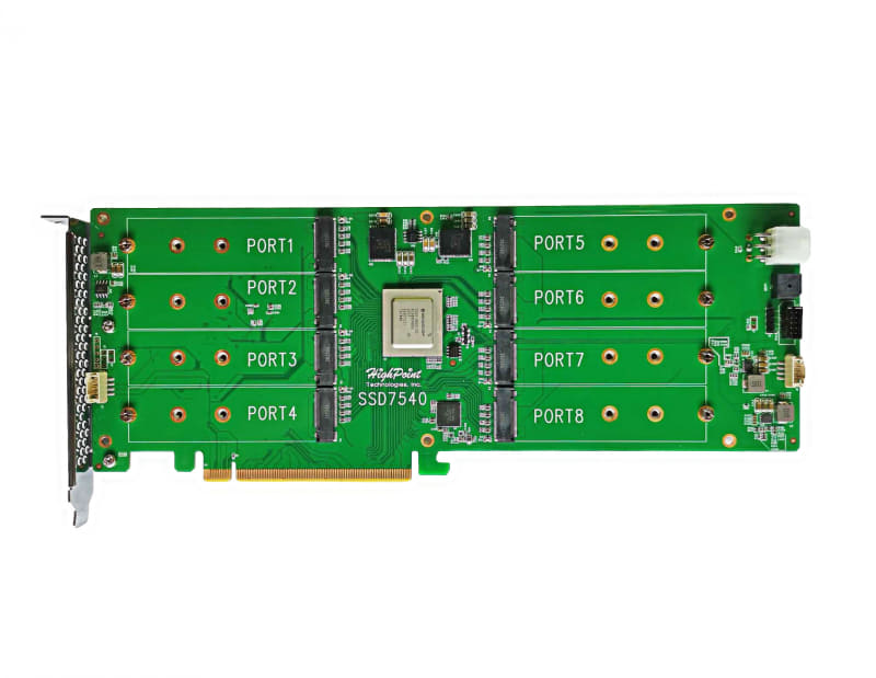 PCIe 4.0 SSDを8枚搭載でき、28,000MB/sを実現するRAIDカード
