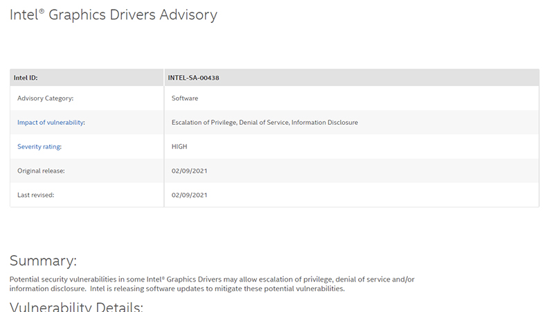 Intel、内蔵GPUドライバなどに脆弱性。対応パッチを公開