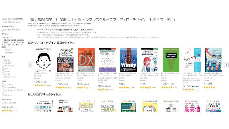 Kindle書籍1,400冊以上が最大半額。インプレスグループの実用書